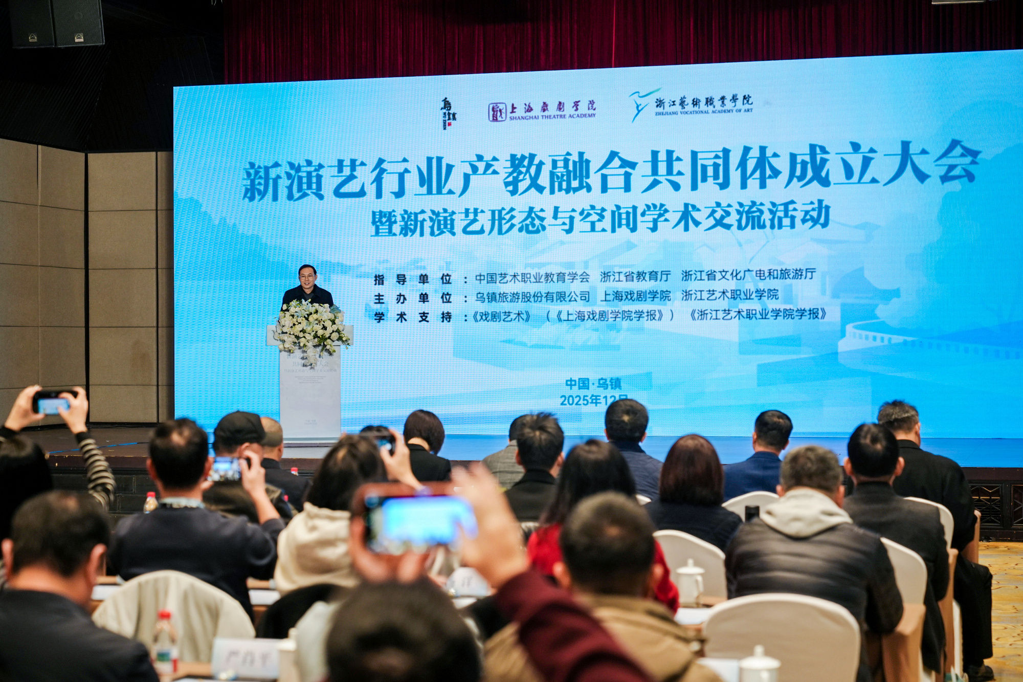 12月6日,新演藝行業(yè)產(chǎn)教融合共同體在浙江桐鄉(xiāng)烏鎮(zhèn)正式成立。來自全國演藝行業(yè)院校、企業(yè)、科研機(jī)構(gòu)及行業(yè)協(xié)會(huì)的百余位代表共聚一堂,共商產(chǎn)教融合與行業(yè)創(chuàng)新發(fā)展。
