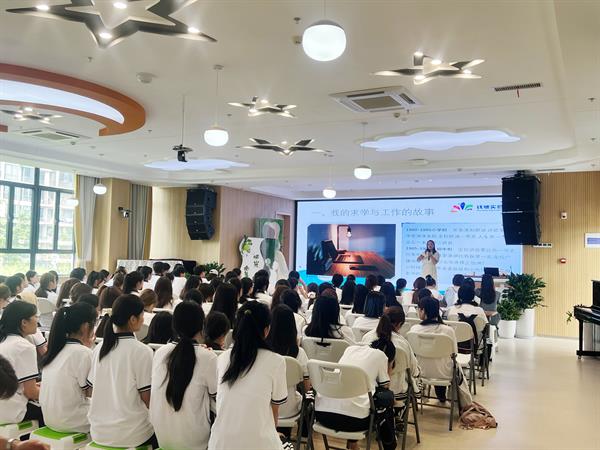 錢塘實驗幼兒園園長陳英及3位教師代表與新生們進行了親切交流。她們結(jié)合自身在專業(yè)選擇、大學學習階段的親身經(jīng)歷,娓娓道來,拉近了與同學們的距離。3位老師輪流分享了入職后與孩子們相處的溫暖教育故事,生動展現(xiàn)了幼兒教師工作的專業(yè)性與幸福感,讓新生們對未來的職業(yè)角色有了更具體、更感性的認知。