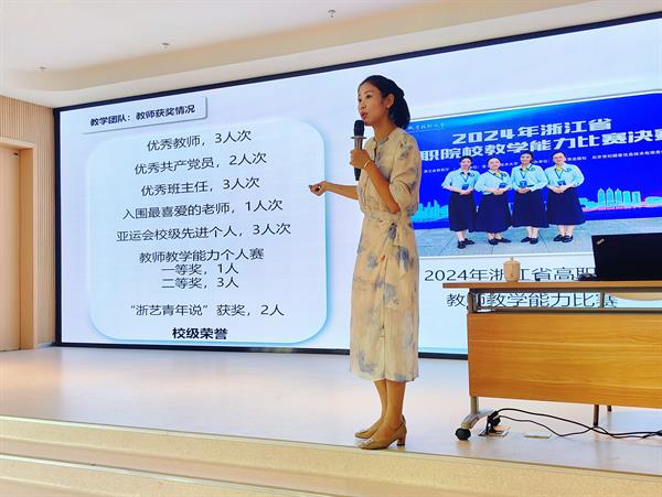 學前教育教研室主任盧茜向新生們介紹了教研室授課教師團隊,并梳理了未來三年的課程設(shè)置、實習安排、校內(nèi)外專業(yè)活動以及各類重要賽事。她結(jié)合行業(yè)發(fā)展趨勢,講解了專業(yè)升學與就業(yè)前景,同時分享了優(yōu)秀畢業(yè)生的成長經(jīng)歷與發(fā)展現(xiàn)狀,激勵新生們樹立專業(yè)信心,明確學習方向。