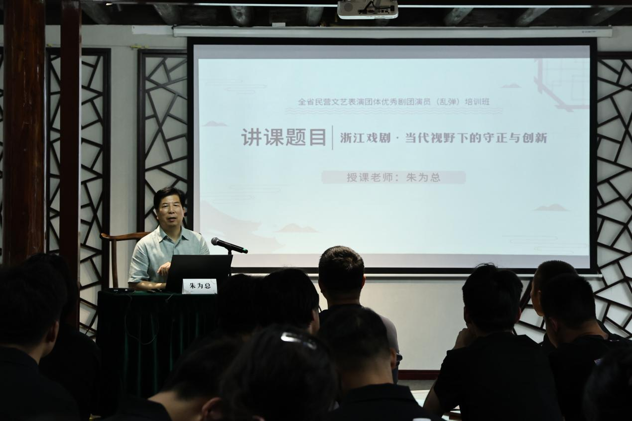 本次培訓(xùn)特別邀請(qǐng)了業(yè)界大咖與資深教師組成授課團(tuán)隊(duì)。著名相聲表演藝術(shù)家李金斗、浙江省評(píng)論家協(xié)會(huì)主席沈勇、原浙江省文化藝術(shù)研究院戲劇研究所所長(zhǎng)朱為總、二級(jí)教授葉志良等權(quán)威專家現(xiàn)場(chǎng)授課,從理論知識(shí)、表演技巧、藝術(shù)創(chuàng)作等多個(gè)方面,為學(xué)員搭建起全方位的學(xué)習(xí)交流平臺(tái)。此外,在培訓(xùn)過(guò)程中還結(jié)合經(jīng)典折子戲開展針對(duì)性排練,讓學(xué)員在沉浸式學(xué)習(xí)中夯實(shí)專業(yè)基礎(chǔ),有效提高舞臺(tái)表演技巧與藝術(shù)表現(xiàn)力。5天的培訓(xùn)緊張有序,學(xué)員們始終以飽滿的熱情投入學(xué)習(xí),通過(guò)理論學(xué)習(xí)與舞臺(tái)實(shí)踐,在思想政治覺悟、藝術(shù)理論素養(yǎng)及舞臺(tái)表演專業(yè)技能等方面均取得了顯著進(jìn)步。