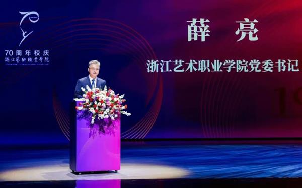 大會(huì)由浙江藝術(shù)職業(yè)學(xué)院院長(zhǎng)、黨委副書記施俊天主持。學(xué)院黨委書記薛亮致辭,他回顧了學(xué)校 70 年辦學(xué)歷程,始終堅(jiān)持立德樹(shù)人,培養(yǎng)出茅威濤、周迅等杰出校友,18 位校友獲中國(guó)戲劇 “梅花獎(jiǎng)” ,彰顯“藝術(shù)家搖籃”的底蘊(yùn)。總結(jié)了學(xué)校扎根浙江、服務(wù)基層,入選國(guó)家 “雙高” 建設(shè)計(jì)劃等成果。杰出校友茅威濤、教師代表支濤、現(xiàn)代學(xué)徒制優(yōu)秀畢業(yè)生陳麗君分別發(fā)言。省教育廳副廳長(zhǎng)陳峰、省文化廣電和旅游廳副廳長(zhǎng)張廣洲肯定學(xué)校貢獻(xiàn),寄予發(fā)展期望。