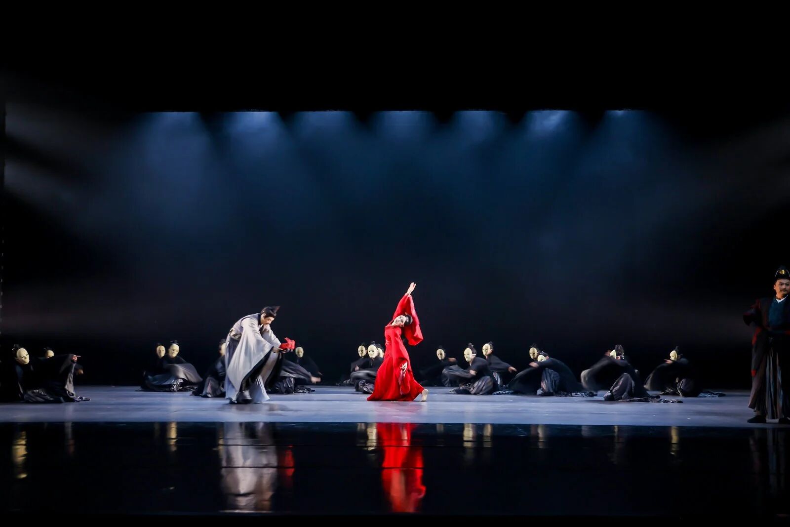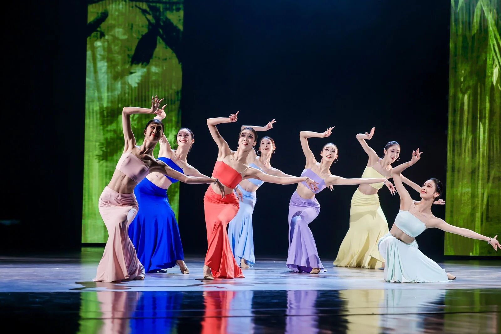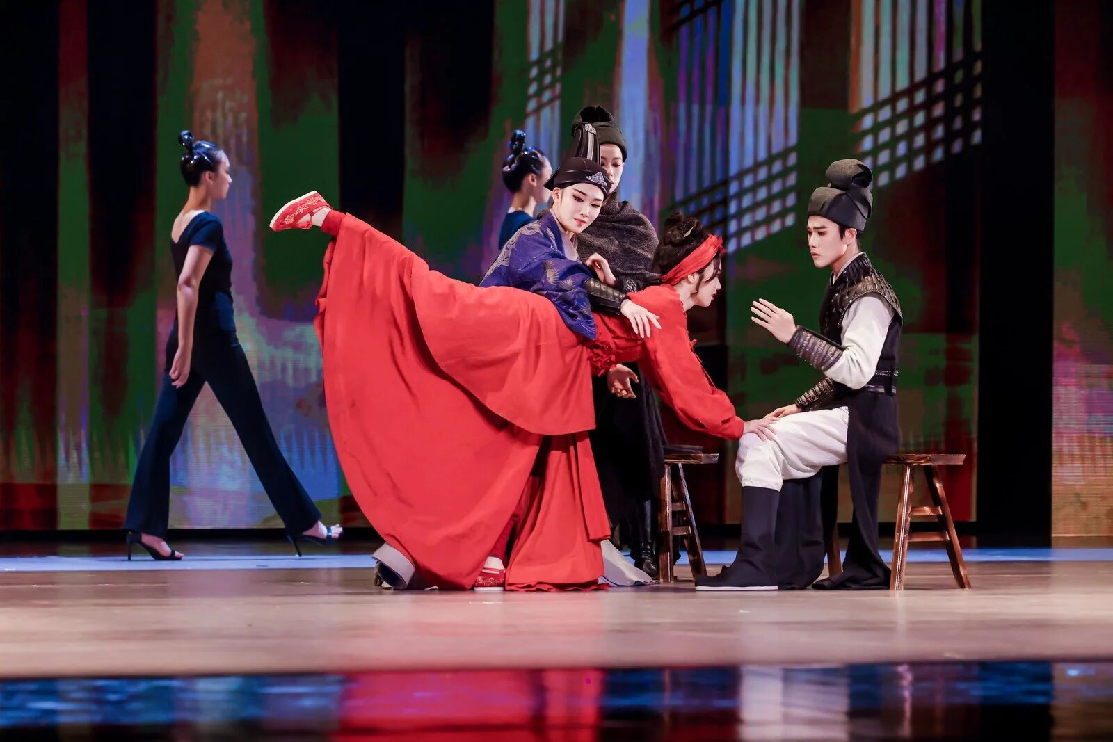 “未來廣度”篇章,燈光驟變,科技感與未來感撲面而來。杰出校友、青年舞蹈家徐夢(mèng)迪與舞蹈學(xué)院教師譚雨旋、楊博文攜學(xué)生重現(xiàn)了中國(guó)舞蹈最高獎(jiǎng)“荷花獎(jiǎng)”作品《西施別越》,其精妙的編排與動(dòng)人的張力,盡顯古典舞的現(xiàn)代審美。