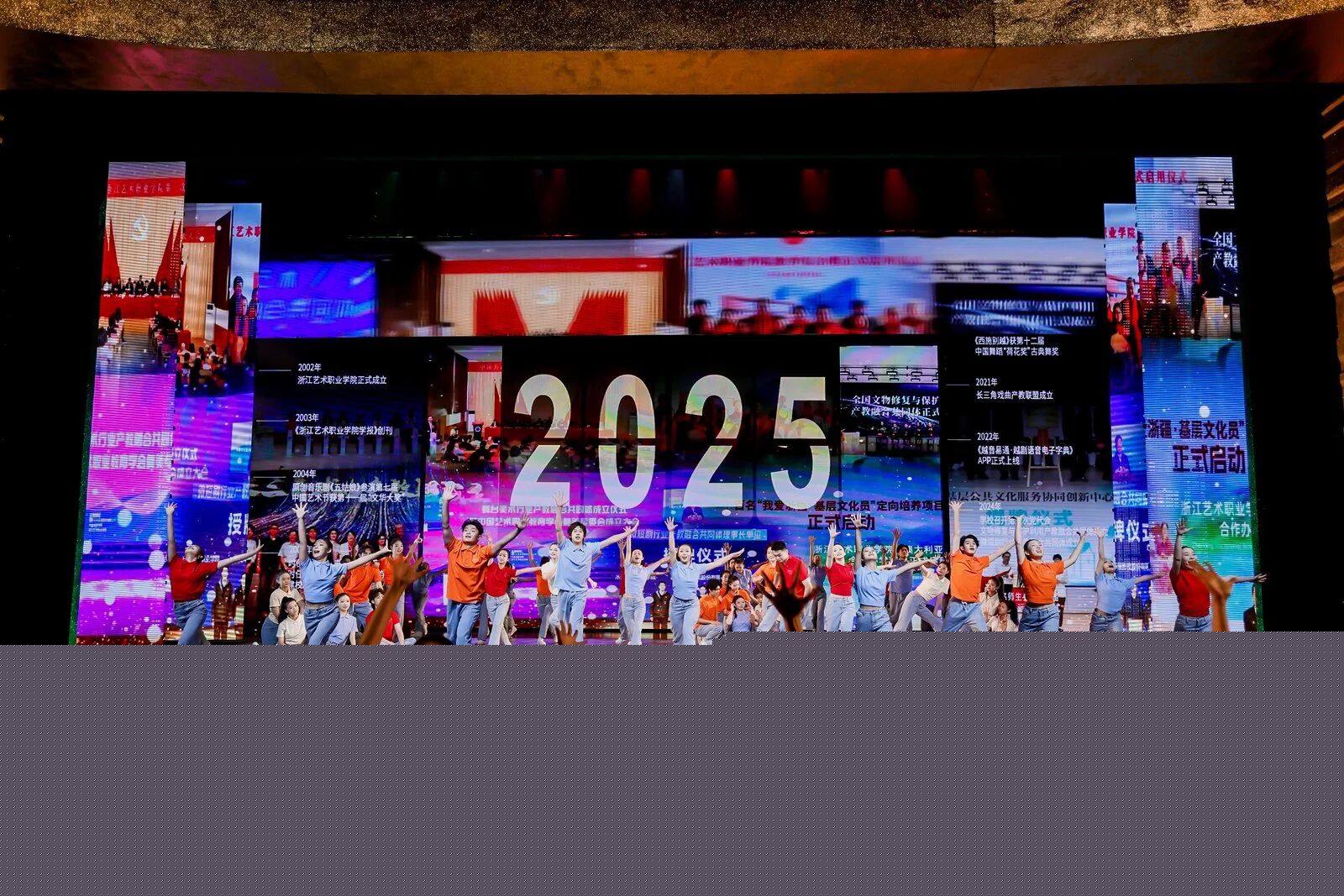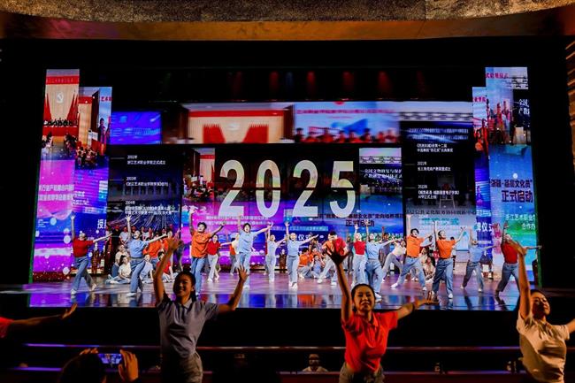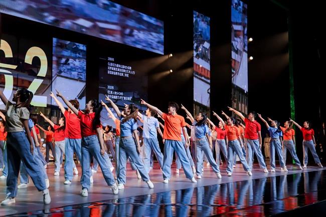 晚會(huì)的最高潮——《藝者無疆》,13位來自不同年代的優(yōu)秀校友逐一分享了他們從舞臺(tái)表演到基層服務(wù)、從文物保護(hù)到國(guó)際交流、從影視創(chuàng)作到文化管理等不同領(lǐng)域“獻(xiàn)身藝術(shù)、服務(wù)人民”的生動(dòng)實(shí)踐與深情感悟。徐夢(mèng)迪用江南舞姿講述浙江故事,許冰深耕基層打造新時(shí)代孝文化品牌,楊茹文推動(dòng)中國(guó)打擊樂在世界舞臺(tái)綻放光彩,裘基鵬在古村老宅間讓歷史遺存與鄉(xiāng)村振興相融相生,陶建新在黨和國(guó)家重大活動(dòng)中讓世界聽見更響亮的中國(guó)聲音,裘冰以匠心為浙江舞臺(tái)藝術(shù)的創(chuàng)新發(fā)展注入更多活力,金瑤用美好歌聲演繹中國(guó)故事,阿麗米熱·米吉提扎根西陲服務(wù)邊疆群眾,趙威在文物保護(hù)與考古一線精心呵護(hù)浙江千年文脈,陳偉鑫用影視作品《云霄之上》講述家國(guó)情懷,袁幼蘭用中國(guó)動(dòng)漫呈現(xiàn)浙江風(fēng)骨,陳天貺數(shù)十年耕耘在越劇教學(xué)一線傳續(xù)越劇薪火。