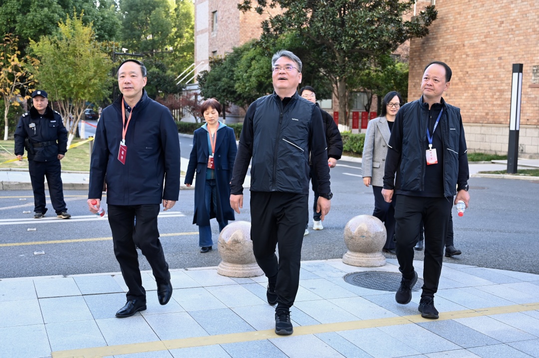 考試當(dāng)天,省教育考試院安排專人在我校駐點,全程監(jiān)督指導(dǎo)考試全過程。省教育考試院院長徐繼彬、副院長應(yīng)朝帥等在我校黨委副書記夏開堂的陪同下到現(xiàn)場巡考,聽取學(xué)校關(guān)于此次招生考試工作情況匯報,詳細(xì)了解了考生人證比對,手機等智能通訊工具二次檢測、考生隨機編組等各環(huán)節(jié),對考試組織工作給予肯定。