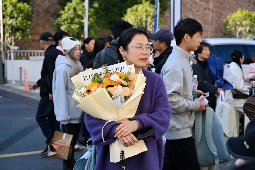 考點外,家長們的叮囑和鼓勵溫暖了冬日的涼意。手捧鮮花的母親,在考場外靜靜等候。“好好考,順其自然,加油!” 簡單的話語,寄托了她對孩子最美好的期盼。