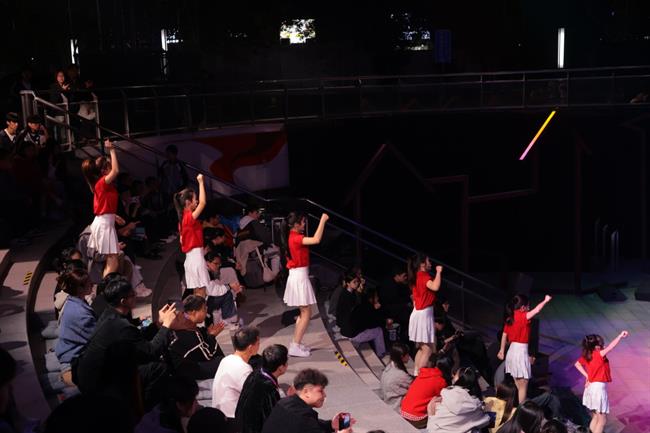 從課程體系對接行業(yè)需求,到以項目制驅(qū)動實戰(zhàn)教學(xué),學(xué)生們?nèi)虆⑴c創(chuàng)意構(gòu)思、劇本撰寫、排練打磨、演出落地、宣傳推廣全流程,不僅夯實表演、創(chuàng)編等核心專業(yè)能力,更在團(tuán)隊協(xié)作、空間把控、應(yīng)急處置、宣發(fā)策劃等綜合素養(yǎng)上實現(xiàn)突破,完成從“課堂學(xué)生”到“準(zhǔn)職業(yè)人”的關(guān)鍵蛻變。演出后的研討交流中,返校校友見證學(xué)弟學(xué)妹的專業(yè)實力與擔(dān)當(dāng),得知22級學(xué)生冒雨堅守排練的細(xì)節(jié),更動容于“浙藝精神”的代代傳承。