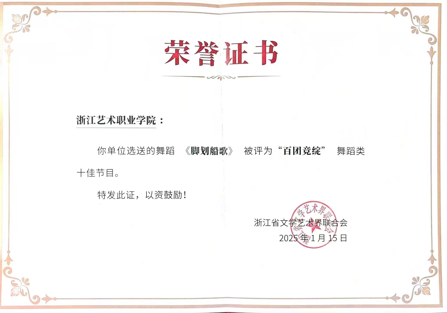 從獲得“浙江風(fēng)格 江南舞韻”舞蹈新作品展演“十佳作品”,到登上全國(guó)舞臺(tái)并獲國(guó)家級(jí)榮譽(yù),《腳劃船歌》的成長(zhǎng)歷程,生動(dòng)詮釋了浙藝舞蹈藝術(shù)的持續(xù)突破與魅力綻放。