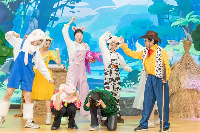 演出現(xiàn)場氣氛熱烈,充滿童趣。入場時,由學生扮演的卡通人偶親切迎賓;演出中,演員深入觀眾席與孩子們親密互動,精巧的道具與生動的表演深深吸引著每一個小觀眾;謝幕時,全場共同回顧劇情、表達新年祝福,孩子們依依不舍,久久不愿離場。那些純真的笑臉、專注的眼神,是對同學們的付出最好肯定。