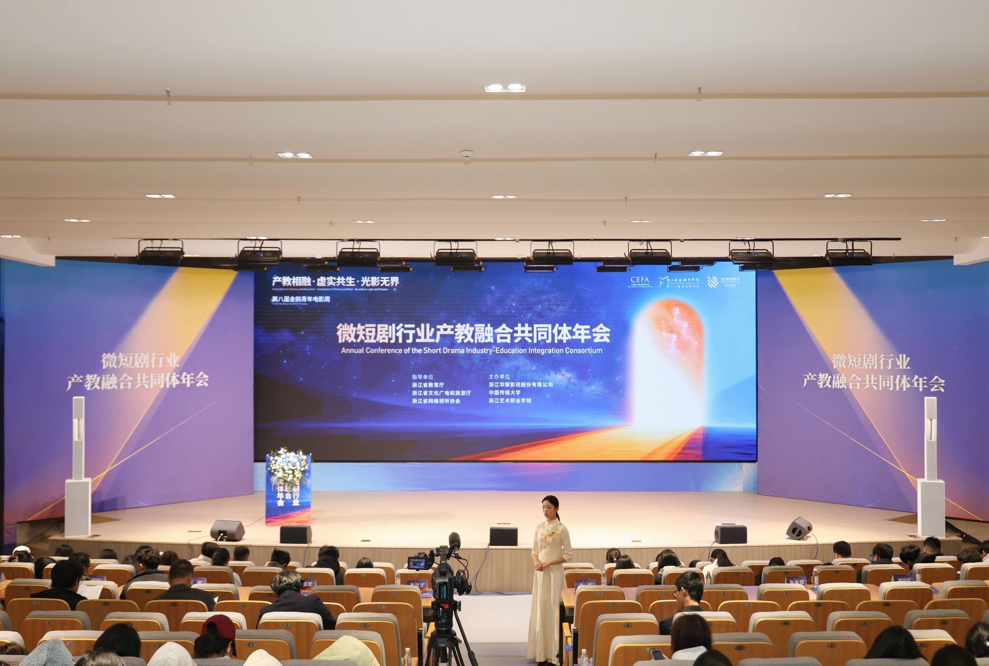 <p style=";text-align: justify;font-family: Calibri;font-size: 14px;white-space: normal"><span style="font-family: 宋體;font-size: 14px"><span style="font-family:Calibri">11</span><span style="font-family:宋體">月</span><span style="font-family:Calibri">17</span><span style="font-family:宋體">日,由浙江省教育廳、浙江省文化廣電和旅游廳、浙江省電影局、浙江省電影家協(xié)會指導(dǎo),中國藝術(shù)職業(yè)教育學(xué)會主辦,浙江藝術(shù)職業(yè)學(xué)院、金鵠青年電影周暨原創(chuàng)影像大賽組委會、微短劇行業(yè)產(chǎn)教融合共同體聯(lián)合承辦的第八屆金鵠青年電影周,在浙江藝術(shù)職業(yè)學(xué)院開幕。本屆電影周以“產(chǎn)教相融·虛實共生·光影無界”為主題,匯聚了全國影視教育界、產(chǎn)業(yè)界的專家學(xué)者、行業(yè)領(lǐng)軍人物及青年創(chuàng)作者代表,共同開啟一場連接教育與產(chǎn)業(yè)、現(xiàn)實與虛擬、創(chuàng)意與技術(shù)的青春光影盛會。</span></span></p>